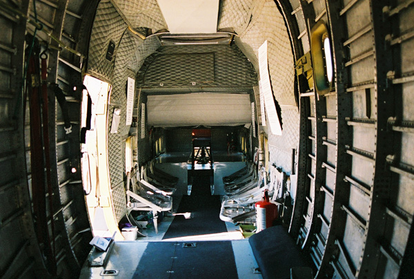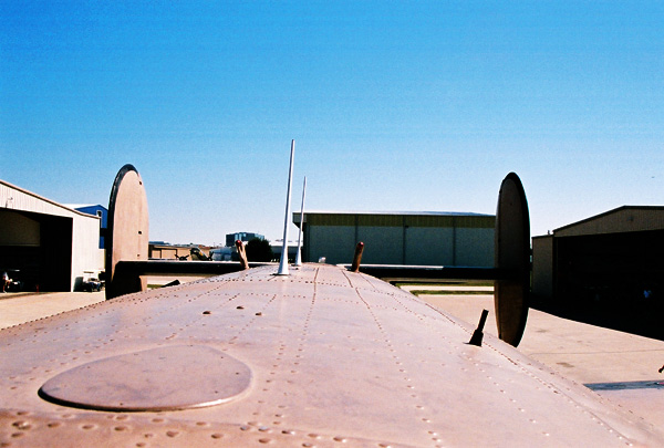 A view of what would have been through the top gun turret, but this was an early model not equipped with any turrets. Starting three planes back in the assembly line however every plane thereafter had the turrets installed.