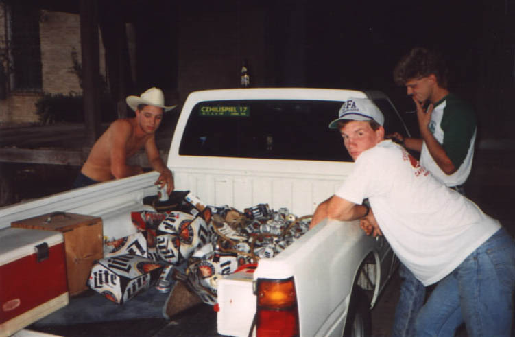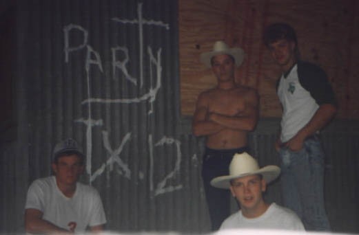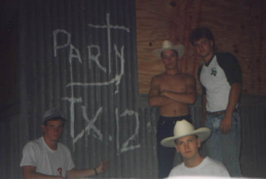 Ok, not sure how this ties all things TX together, but I'm sure someone might get a laugh or two out of these....Judging by certain elements of these pictures, I'm guessing Fall of '89.   The writing on the wall has been there since the early 80's, and we felt obliged to pose by it in rememberence of the TX12 ("Texas Twelve") who had been there before us.   The bumpersticker on my truck window describes the event... Czhilispiel 17, an annual chili-cookoff/drunken brawl hosted annually by the local and clinicly insane residents of Flatonia, Texas.   For a long time, it seemed like the only outsiders to visit the festival were people from my hometown of Friendswood, Texas.BTW, I'm the one with the mullet, green and white shirt.   LMAO!TX-Deck out.
