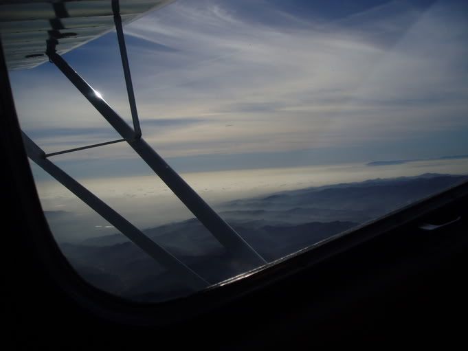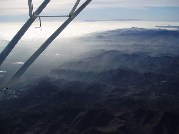 The south hills of the Ojai Valley and clouds as far as the eye can see beyond them. Underneath those clouds is the city of Ventura and Oxnard, and then the Pacific Ocean. SZP is inland just enough, and is protected by a mountain range such that the coastal weather usually doesn't stop make it to the airport even when CMA, OXR, and SBA are socked in as seen here.
