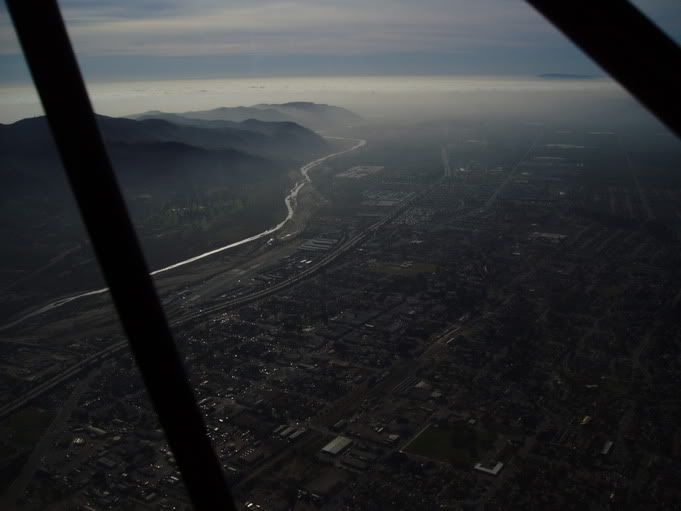 Looking towards Santa Barbara, we see Ventura in the foreground, and one of the Channel Islands peeking through the clouds in the distance.