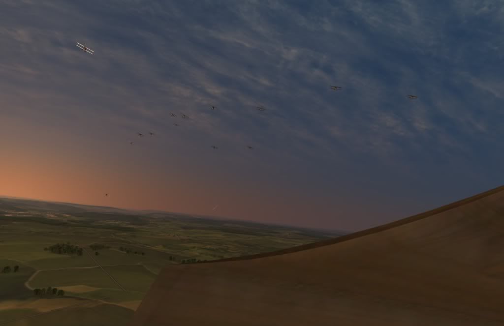 Here's a shot as I prepared to fly through the swarm of 13 of them, it had been 15 a few moments before. . .GOZR is there in the distance to lend a hand, and king is off in the distance firing a flare and looking for us. The three of us managed to down all of them (5 "Ace" and 15 "Normal").